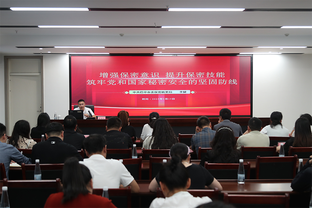 為進(jìn)一步提高國(guó)企干部職工的保密素養(yǎng)和能力,9月19日,巴中發(fā)展集團(tuán)開(kāi)展保密工作專(zhuān)題培訓(xùn),市委保密機(jī)要局科技測(cè)評(píng)中心主任李健應(yīng)邀授課,集團(tuán)本部全體職工、下屬企業(yè)分管領(lǐng)導(dǎo)及相關(guān)部門(mén)員工共60余人參加培訓(xùn)。